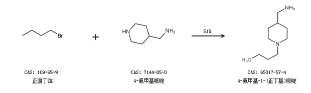 2.通过正溴丁烷和4-氨甲基哌啶合成4-氨甲基-1-(正丁基)哌啶,收率约51%;
