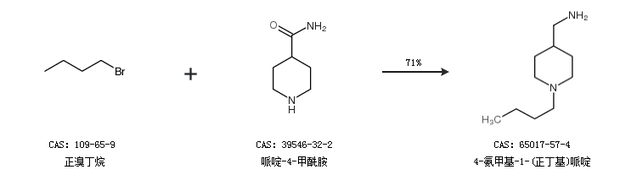 1.通过正溴丁烷和哌啶-4-甲酰胺合成4-氨甲基-1-(正丁基)哌啶,收率约71%;