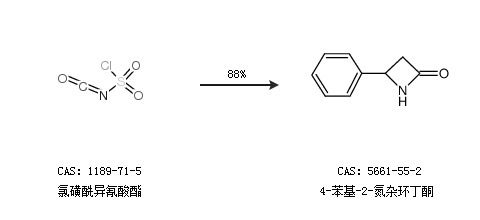 2.通过氯磺酰异氰酸酯合成4-苯基-2-氮杂环丁酮,收率约88%;