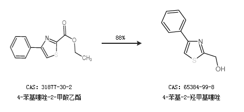 1.通过4-苯基噻唑-2-甲酸乙酯合成4-苯基-2-羟甲基噻唑,收率约88%;