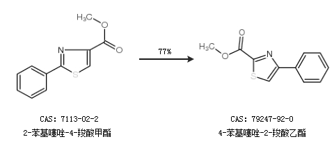 1.通过2-苯基噻唑-4-羧酸甲酯合成4-苯基噻唑-2-羧酸乙酯,收率约77%;
