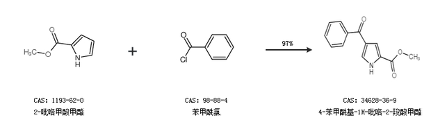 1.通过2-吡咯甲酸甲酯和苯甲酰氯合成4-苯甲酰基-1H-吡咯-2-羧酸甲酯,收率约97%;
