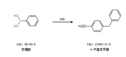 2.通过苯硼酸合成4-苄基苯甲腈,收率约94%;
