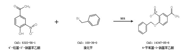 2.通过4''-羟基-3''-硝基苯乙酮和溴化苄合成4-苄氧基-3-硝基苯乙酮,收率约96%;