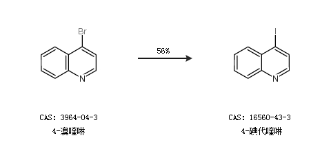 1.通过4-溴喹啉合成4-碘代喹啉,收率约56%;
