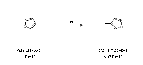 1.通过异恶唑合成4-碘异恶唑,收率约11%;