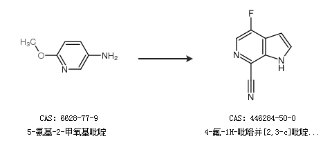 2.通过5-氨基-2-甲氧基吡啶合成4-氟-1H-吡咯并[2,3-c]吡啶-7-甲腈