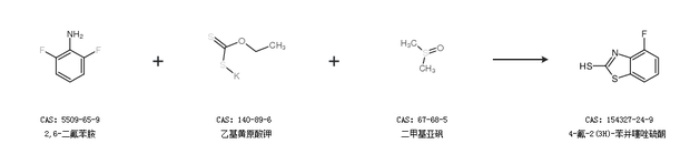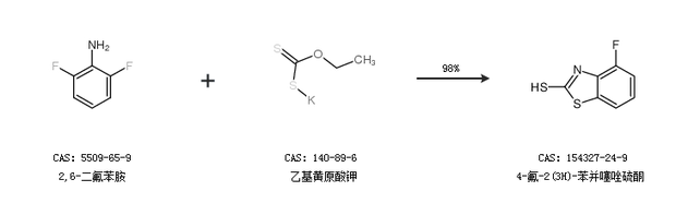 1.通过2,6-二氟苯胺和乙基黄原酸钾合成4-氟-2(3H)-苯并噻唑硫酮,收率约98%;