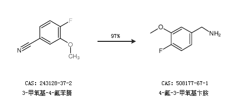 1.通过3-甲氧基-4-氟苯腈合成4-氟-3-甲氧基卞胺,收率约97%;