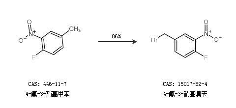2.通过4-氟-3-硝基甲苯合成4-氟-3-硝基溴苄,收率约86%;