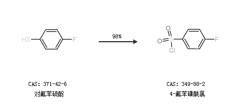 1.通过对氟苯硫酚合成4-氟苯磺酰氯,收率约98%;