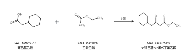 1.通过环己基乙酸和乙酸乙酯合成4-环己基-3-氧代丁酸乙酯,收率约10%;