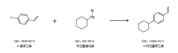 2.通过4-溴苯乙烯和环己基溴化镁合成4-环己基苯乙烯