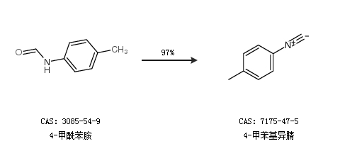1.通过4-甲酰苯胺合成4-甲苯基异腈,收率约97%;