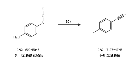 2.通过对甲苯异硫氰酸酯合成4-甲苯基异腈,收率约80%;