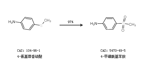 2.通过4-氨基茴香硫醚合成4-甲磺酰基苯胺,收率约97%;