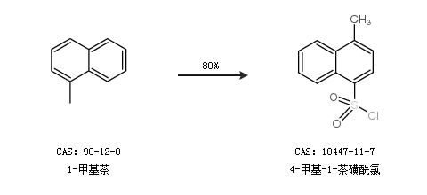 1.通过1-甲基萘合成4-甲基-1-萘磺酰氯,收率约80%;