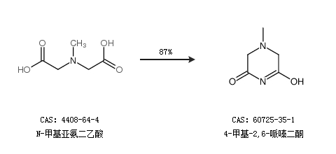 1.通过N-甲基亚氨二乙酸合成4-甲基-2,6-哌嗪二酮,收率约87%;