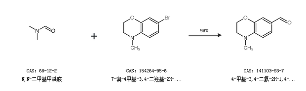 1.通过N,N-二甲基甲酰胺和7-溴-4甲基-3,4-二羟基-2H-1,4-苯并恶嗪合成4-甲基-3,4-二氢-2H-1,4-苯并噁嗪-7-甲醛,收率约99%;