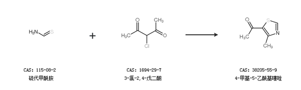 1.通过硫代甲酰胺和3-氯-2,4-戊二酮合成4-甲基-5-乙酰基噻唑