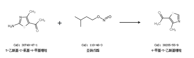 2.通过5-乙酰基-2-氨基-4-甲基噻唑和亚硝戊酯合成4-甲基-5-乙酰基噻唑
