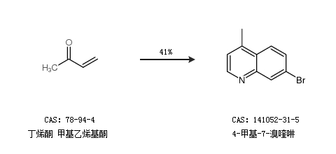 1.通过丁烯酮 甲基乙烯基酮合成4-甲基-7-溴喹啉,收率约41%;