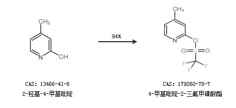 1.通过2-羟基-4-甲基吡啶合成4-甲基吡啶-2-三氟甲磺酸酯,收率约94%;