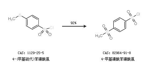 1.通过4-(甲基硫代)苯磺酰氯合成4-甲基磺酰苯磺酰氯,收率约92%;