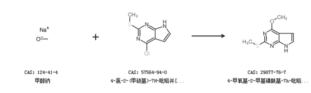 1.通过甲醇钠和4-氯-2-(甲硫基)-7H-吡咯并[2,3-D]嘧啶合成4-甲氧基-2-甲基磺酰基-7h-吡咯并(2,3-d)嘧啶