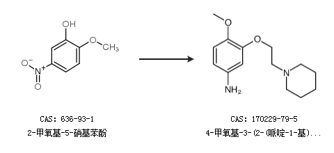 1.通过2-甲氧基-5-硝基苯酚合成4-甲氧基-3-(2-(哌啶-1-基)乙氧基)苯胺