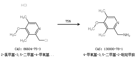 1.通过2-氯甲基-3,5-二甲基-4-甲氧基吡啶盐酸盐合成4-甲氧基-3,5-二甲基-2-吡啶甲胺,收率约75%;