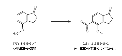 1.通过4-甲氧基-1-茚酮合成4-甲氧基-5-硝基-2,3-二氢-1H-茚-1-酮