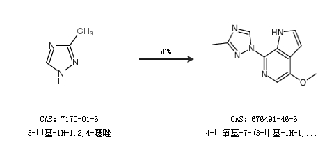 2.通过3-甲基-1H-1,2,4-噻唑合成4-甲氧基-7-(3-甲基-1H-1,2,4-噻唑-1-基)-1H-吡咯并[2,3-c]吡啶,收率约56%;