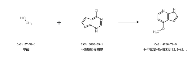1.通过甲醇和4-氯吡咯并嘧啶合成4-甲氧基-7h-吡咯并[2,3-d]嘧啶