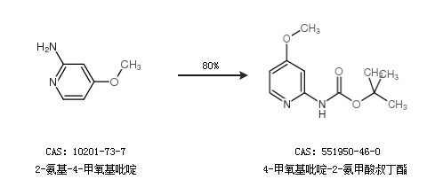 1.通过2-氨基-4-甲氧基吡啶合成4-甲氧基吡啶-2-氨甲酸叔丁酯,收率约80%;