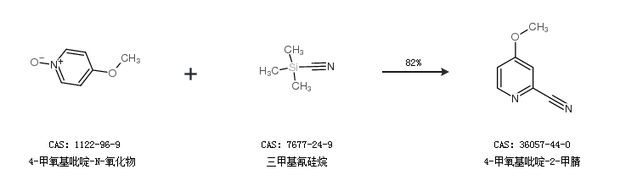 2.通过4-甲氧基吡啶-N-氧化物和三甲基乙炔基硅合成4-甲氧基吡啶-2-甲腈,收率约78%;