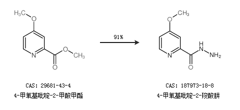 1.通过4-甲氧基吡啶-2-甲酸甲酯合成4-甲氧基吡啶-2-羧酸肼,收率约91%;