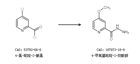 2.通过4-氯-吡啶-2-酰氯合成4-甲氧基吡啶-2-羧酸肼