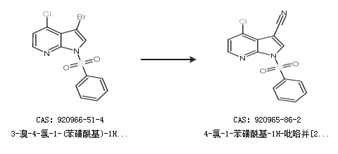1.通过3-溴-4-氯-1-(苯磺酰基)-1H-吡咯并[2,3-B]吡啶合成4-氯-1-苯磺酰基-1H-吡咯并[2,3-b]吡啶-3-甲腈