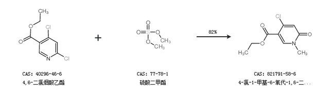 1.通过4,6-二氯烟酸乙酯和硫酸二甲酯合成4-氯-1-甲基-6-氧代-1,6-二氢吡啶-3-羧酸乙酯,收率约82%;