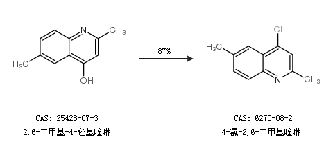 1.通过2,6-二甲基-4-羟基喹啉合成4-氯-2,6-二甲基喹啉,收率约87%;