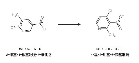 1.通过2-甲基-4-硝基吡啶-N-氧化物合成4-氯-2-甲基-3-硝基吡啶
