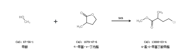 1.通过甲醇和α-甲基-γ-丁内酯合成4-氯-2-甲基丁酸甲酯,收率约94%;