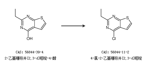 1.通过2-乙基噻吩并[2,3-d]嘧啶-4-醇合成4-氯-2-乙基噻吩并[2,3-d]嘧啶