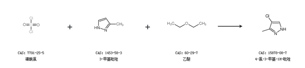 2.通过磺酰氯、3-甲基吡唑和乙醚合成4-氯-3-甲基-1H-吡唑