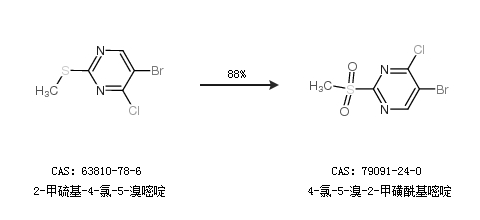 1.通过2-甲硫基-4-氯-5-溴嘧啶合成4-氯-5-溴-2-甲磺酰基嘧啶,收率约88%;