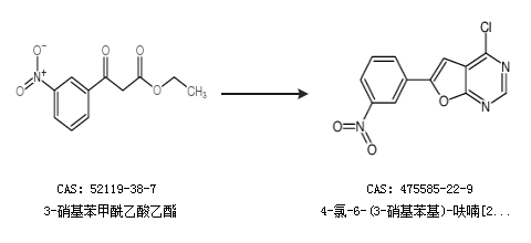 4-氯-6-(3-硝基苯基)-呋喃[2,3-d]嘧啶的合成路线