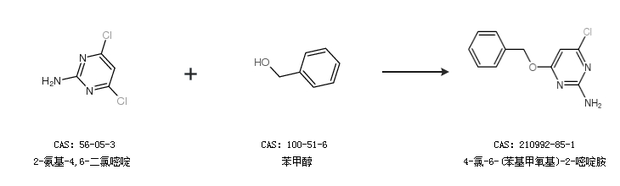 1.通过2-氨基-4,6-二氯嘧啶和苯甲醇合成4-氯-6-(苯基甲氧基)-2-嘧啶胺