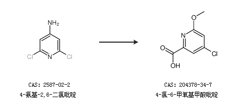 2.通过4-氨基-2,6-二氯吡啶合成4-氯-6-甲氧基甲酸吡啶