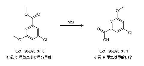 1.通过4-氯-6-甲氧基吡啶甲酸甲酯合成4-氯-6-甲氧基甲酸吡啶,收率约92%;